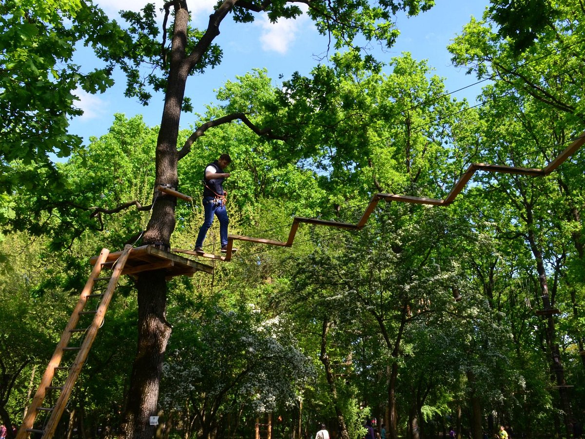 Zo rond de lunch togen onze jongste en ik naar de satellietgemeente Cernica, want een van haar klasgenootjes gaf daar haar verjaardagsfeestje. De locatie was vrij algemeen en ook licht verontrustend vermeld als “Cernica Extreme Park”, maar bij aankomst bleek het een klimbos.