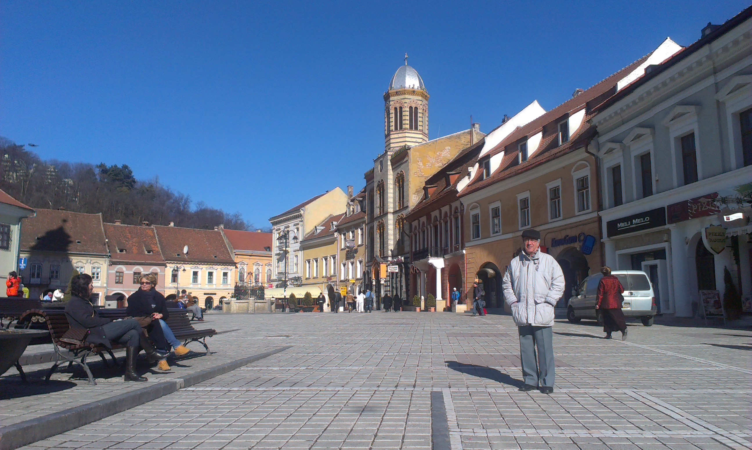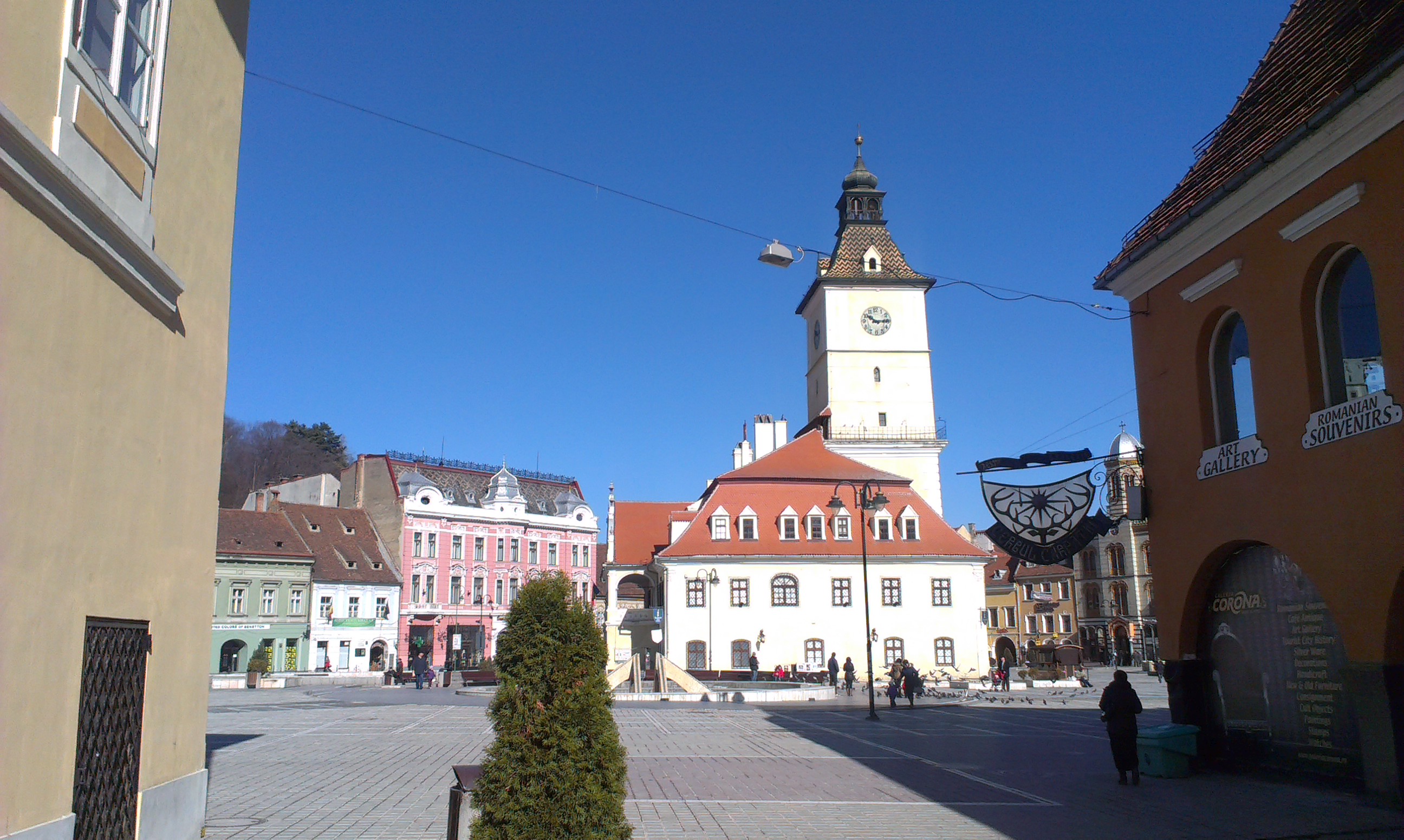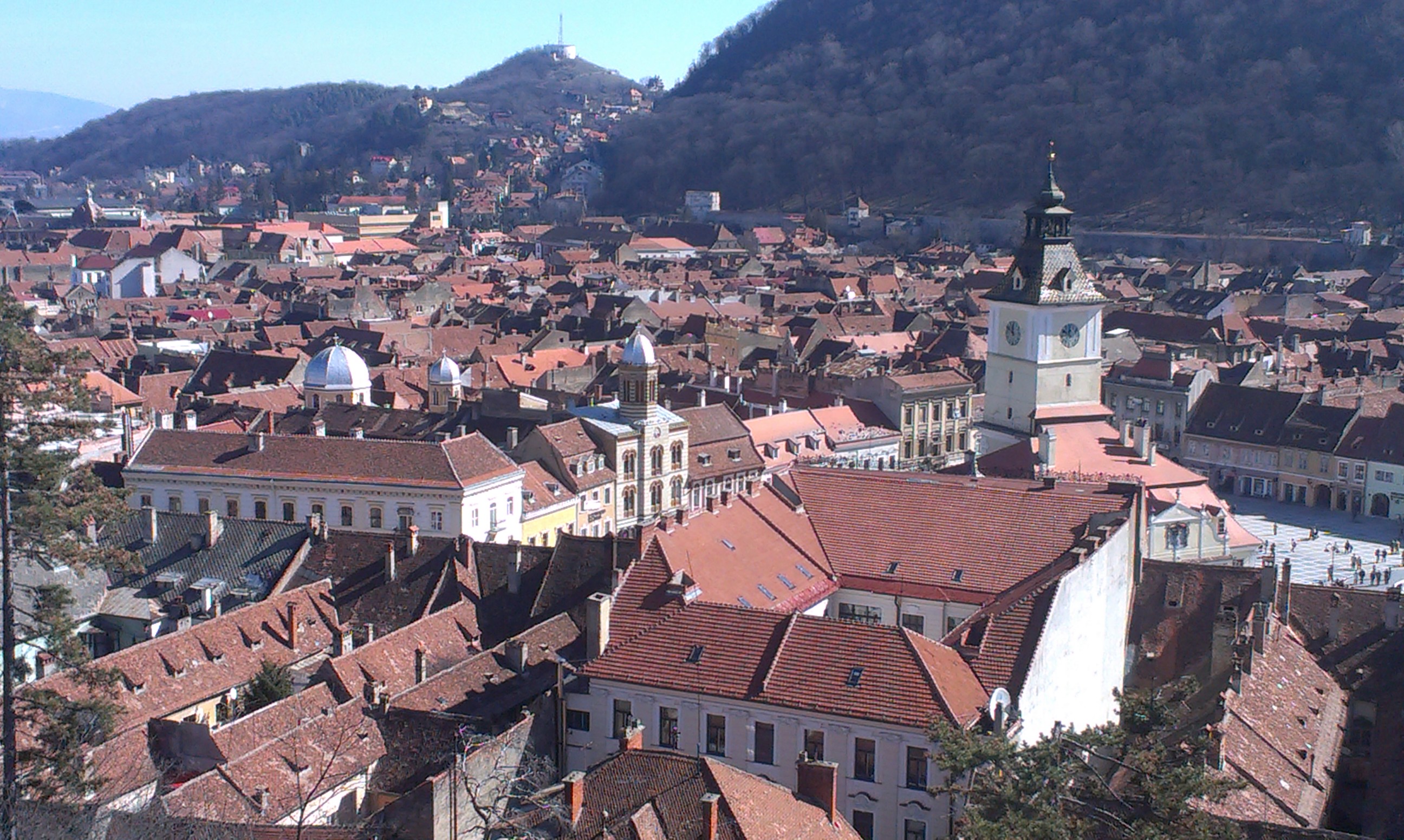 Toevallig viel de eerste Brașoveaanse lentedag in ons weekend, dus had ik prachtig licht voor de telefoonto’s die je tegenwoordig zo handig kunt maken. Op de kiekjes is te zien waarom iedereen bij aankomst in Brașov vanuit Boekarest of elders onder de Karpaten niet ontkomt aan het platgetreden: “Alsof je in een ander land komt.” De Balkan houdt op bij de bergen, Brașov ligt in Midden-Europa, en zo is het maar net. De plaatselijke burgemeester of burgerij heeft blijkbaar gezorgd voor een fatsoenlijk renovatiebeleid en er zijn zelfs nergens straathonden te bekennen.
