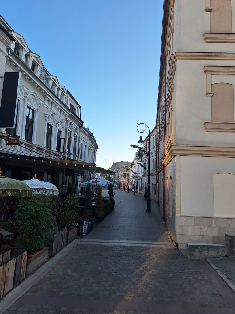 Na een wijntje bij het meer slenter je de stad in. Het oude centrum heeft in tegenstelling tot Boekarest weinig stemmige ruïnes meer. Het is grondig opgeknapt en schoongeveegd. Je struikelt over de barretjes, ijssalons en restaurants:
