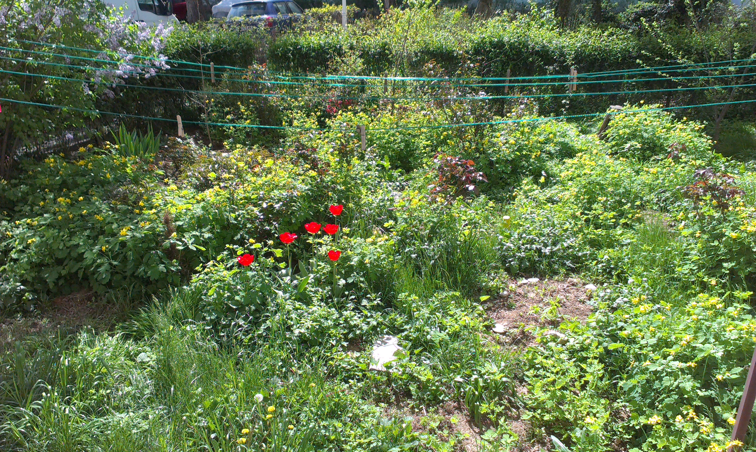 Zo is het leven op de begane grond. Je bent lekker dicht bij de natuur, natuur die maar weinigen in deze betonwereld Boekarest gegeven is. Maar het groen grijpt je aan en wegens afwisselend zon en regen van onze lieve Heer groeit het de spuigaten uit.